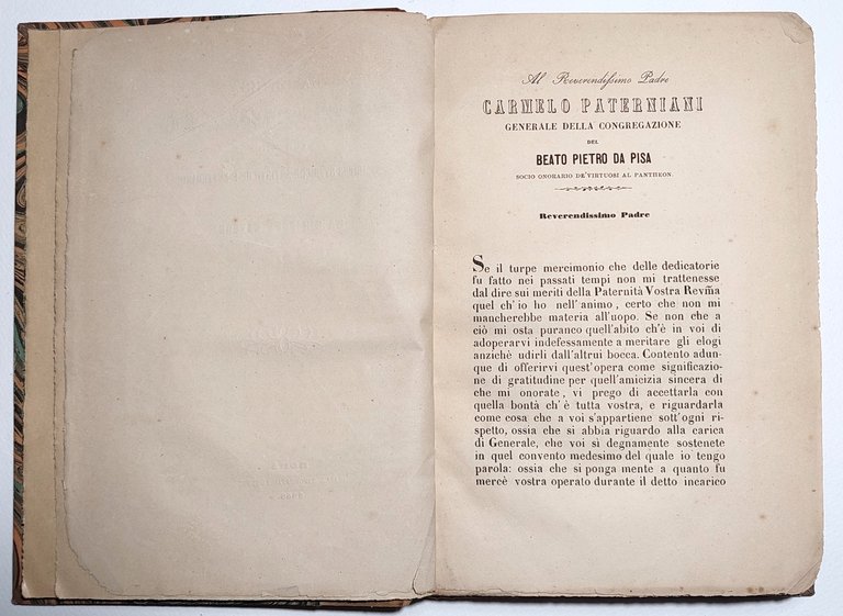 Legatura rigida in mezza pelle in condizioni accettabili, mancanza del dorso, piatti marmorizzati in discreto stato, lievi segni del tempo, margine interno dei piatti in pelle con alcuni sporcizie e lievi abrasioni, tagli irregolari bruniti, fogli di guardia marmorizzati, annotazione a matita al frontespizio e al margine superiore ed inferiore della prima pagina bianca, interno in discreto stato, alcune fioriture alle pagine interne che non vanno a disturbare la lettura, pagine leggermente ingiallite, all'interno biglietto semirigido invito del consiglio studentesco alla seduta inaugurale del quarto congresso universitario romano del 1948, numero pagine 223, ultima pagina con uno strappo al margine interno che va ad interessare il testo senza perduta di questo, una piccola mancanza al margine superiore piccoli strappi al margine esterno ed inferiore senza interessamento del testo, alcune sottolineature a matita e a matita colorata in circa 10 pagine, numero pagine 224 dimensioni cm 23 x 16