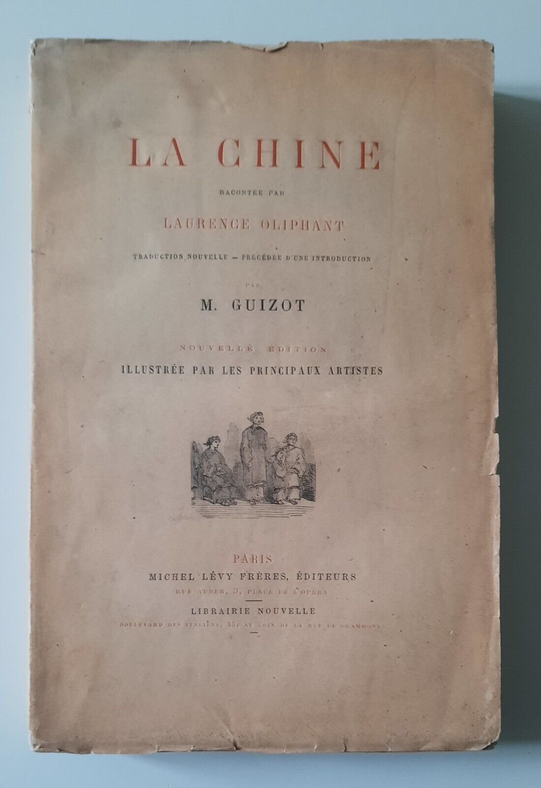 LA CHINE RACONTEE PAR LAURENCE OLIPHANT PARIS M. LEVY FRERES 1875In 4°, pag. [6] 403, legatura editoriale, copertina illustrata, ill. in b/n.Lievi segni alla copertina, tenue macchia all'angolo superiore interno.Ulteriori dettagli e immagini a richiesta.