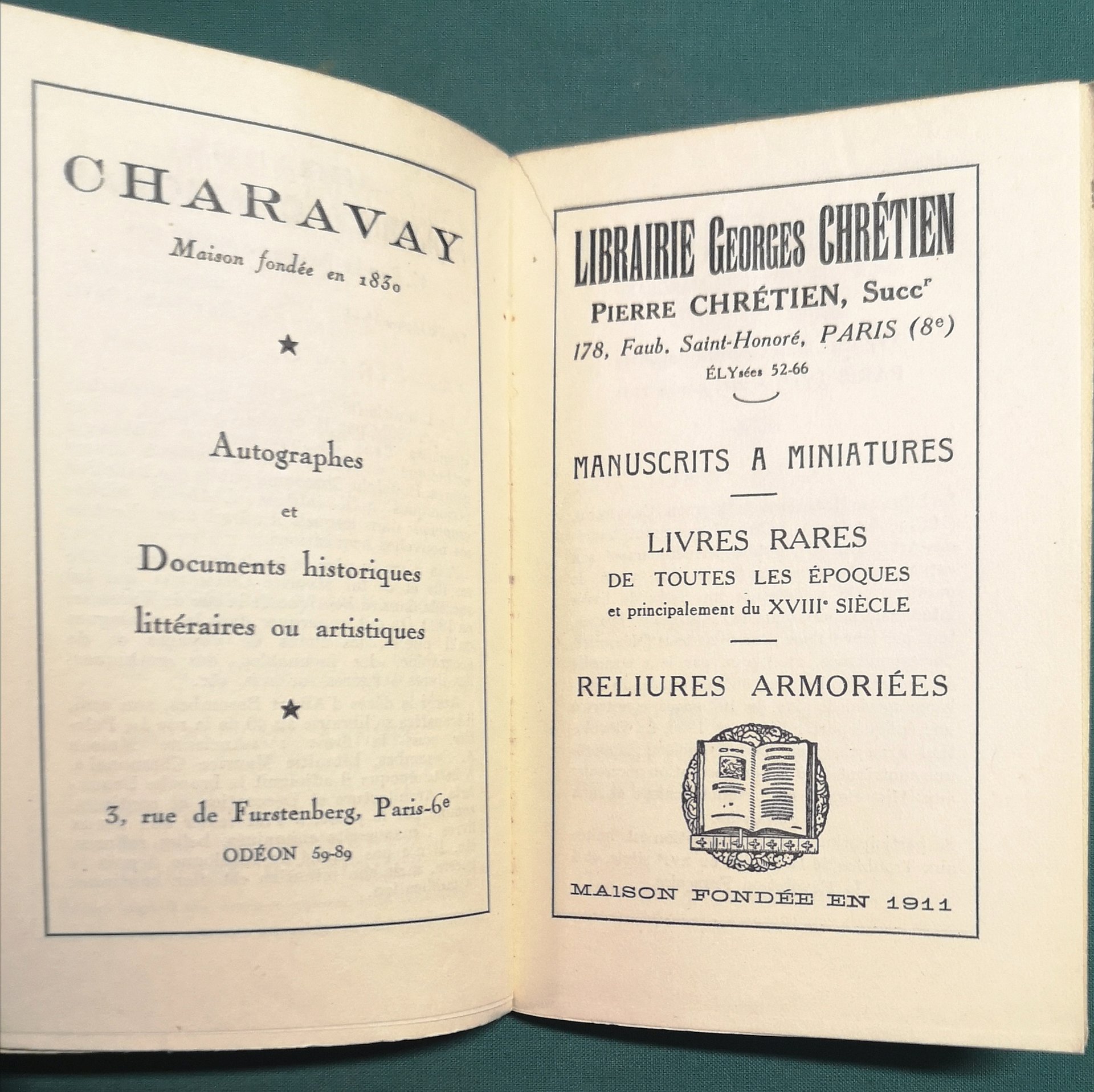 >in-16, pp. 100 non numerate, cart. editoriale. Edizione originale, rara a trovarsi, di questo catalogo delle librerie espositrici, in ordine alfabetico, con prefazione del presidente dell'Accadémie Francaiise Edouard Herriot. Perfetto esemplare, freschissimo e intonso.
