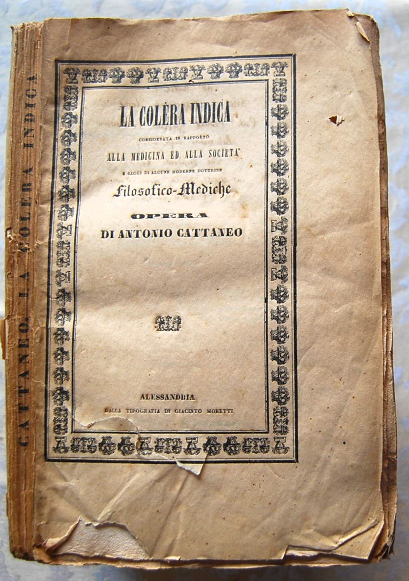 Tipografia Giacinto Moretti, 1838. In-8, brossura, pp. 165, con una grande tavola piu' volte ripegata. Strappi alla brossura, pagine interne con fioriture. Rara edizione sull'epidemia di colera a Ovada.