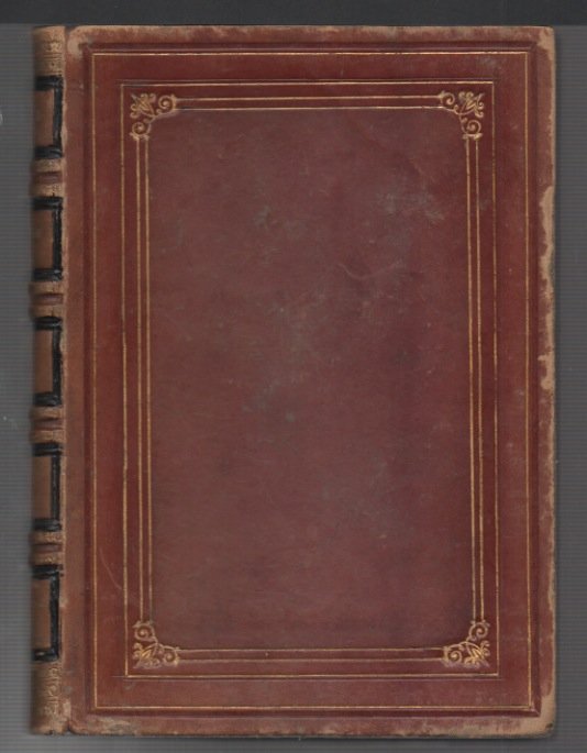 - bella legatura coeva in piena pelle, dorso a quattro nervi doppi, scomparti inquadrati in cornice color nero, fregi e titoli oro, piatti in cornici a filetto singolo concentriche in oro e a secco, tagli marmorizzati,