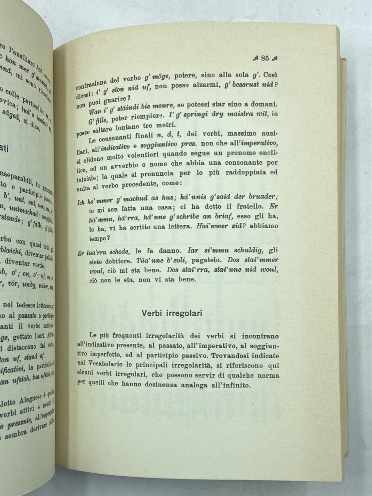 Brossura editoriale a stampa, cm 21.5 x 14.5, pp 212 (4). Sguaclitura sul piatto anteriore, ben conservato l'interno. Ristampa anastatica dell'edizione 1927 di questo studio sui Walser e le tradizioni di lingua tedesca di Alagna, della Valsesia e del Monte Rosa.