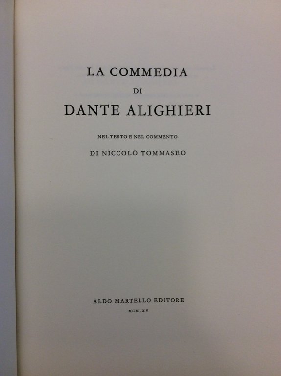 LA COMMEDIA DI DANTE ALIGHIERI. - Nel testo e nel commento di Niccolò Tommaseo.