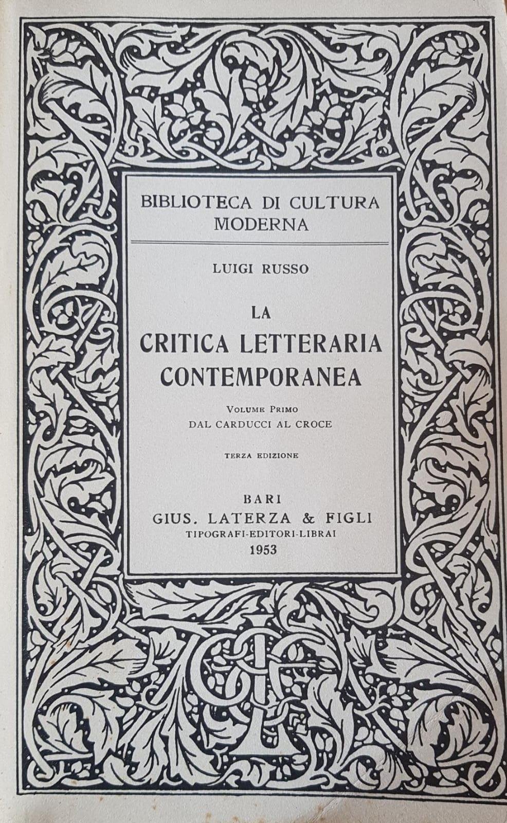 LA CRITICA LETTERARIA CONTEMPORANEA DAL CARDUCCI AL CROCE