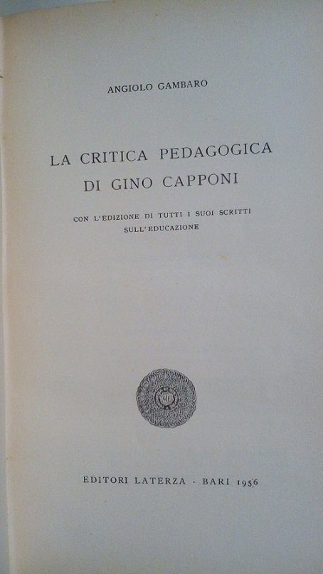 LA CRITICA PEDAGOGICA DI GINO CAPPONI