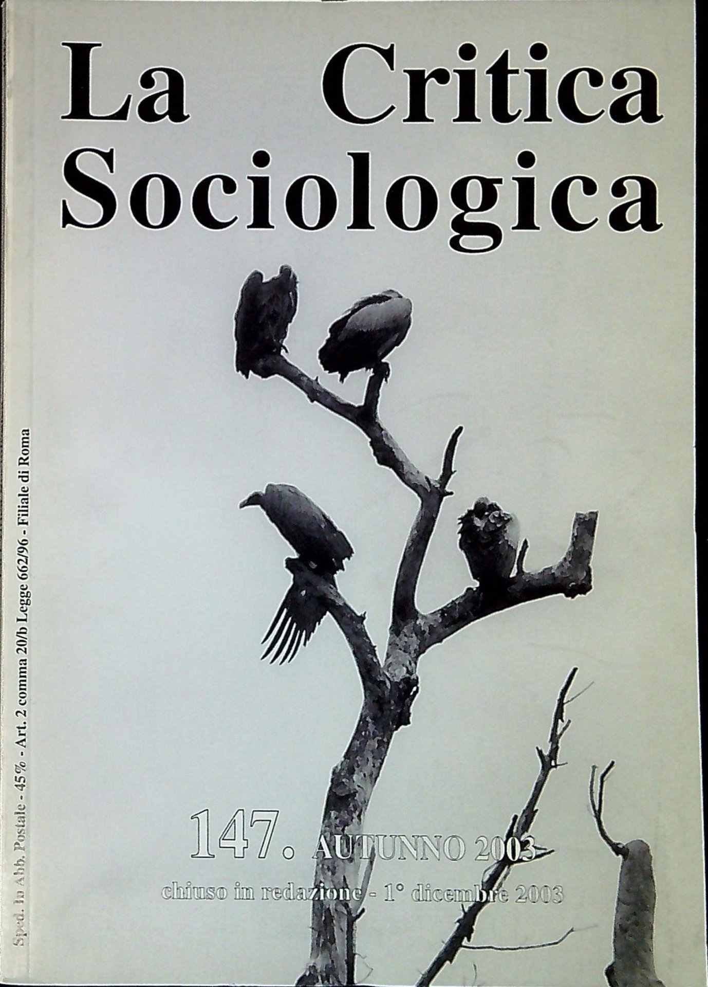 direttore Franco Ferrarotti La critica sociologica n. 147. Roma, Siares 2003, (58002)