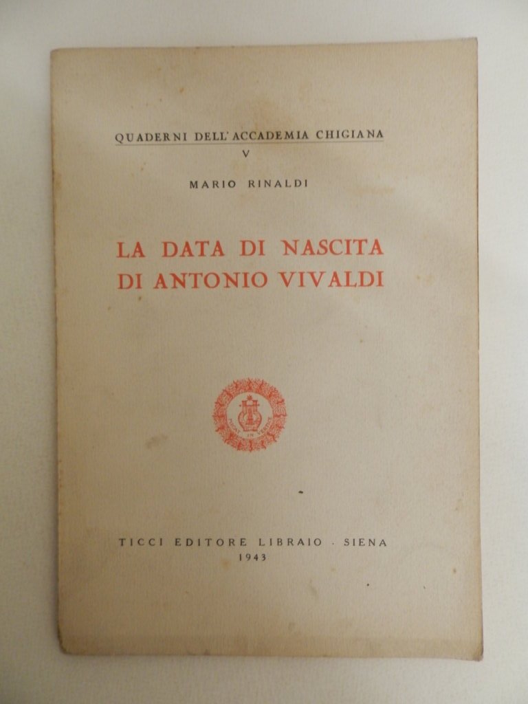 8^, pp. 31, brossura editoriale con titolo in rosso impresso al piatto, minime tracce di polvere e gore alla brossura, esemplare molto buono. Comunicazione fatta all'Accademia musicale Ghiaiana di Siena il giorno 19 luiglio 1943. Edizione di 300 esemplari numerati, questa copia è la numero 174.. *** TUTTI I NOSTRI LIBRI SONO VISIBILI PREVIO CONTATTO MAIL O TELEFONO NELLA NUOVA SEDE DI MILANO: LIBRERIA COSMOPOLIS, VIA JOMMELLI, 22. ***