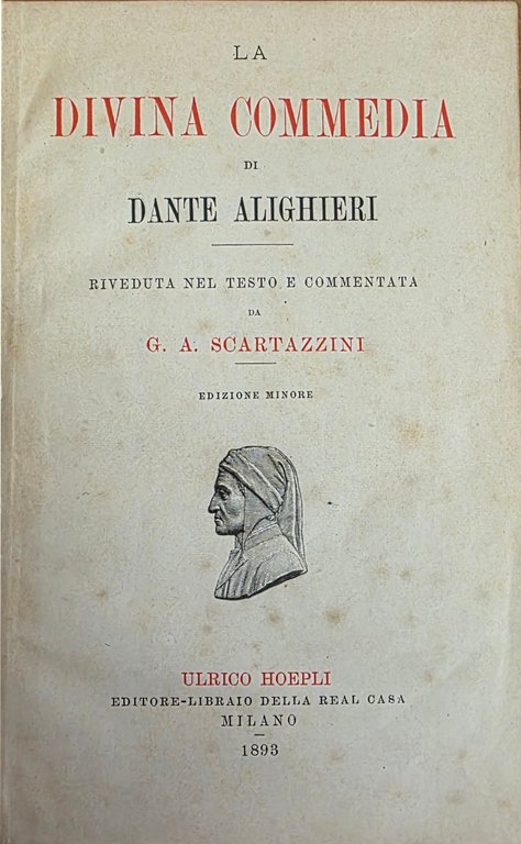 In appendice al poema dantesco: Rimario e Indice dei nomi propri e delle cose notabili in ottavo leg. cart. con piatti telati e angoli, titolo in oro al dorso e nervi pp. XVI, 945, (1), CXXIV Buono (Good) Buon es, qualche annotaz. coeva a matita.