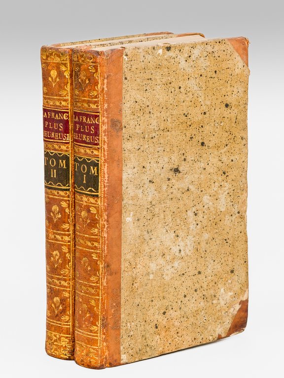 2 vol. reliure de l'époque demi-basane marron à petits coins, s.n., En France, 1787 [ ou 1788 ], 2 ff., XVII-XXVI-XII-122 [ pour 222 ] pp., 1 f. blanc, 22 pp. ; 2 ff., 339 pp. Très rare exemplaire de cette édition dont la date d'impression semble avoir été modifiée postérieurement (MDCCLXXXVII transformé malhabilement en MDCCLXXXVIII), et dont l'auteur comme l'éditeur demeurent inconnus. L'avis de l'éditeur indique : "L'Auteur de cet ouvrage est un homme très distingué. Consommé dans la théorie de la science du gouvernement, il prévoyoit à un tel degré la chute de M. de Calonne ; que tandis que ce Ministre figuroit, déclamoit les Discours aux Assemblées des Notables, les presses rouloient avec vitesse sur ce nouveau Traité d'Administration". Dans sa préface l'auteur, qui revendique cinquante ans de travail et d'expérience, précise : "Je n'ai point été Ministre ; & je peux dire que je n'ai pas voulu l'être, puisqu'il m'a été offert sous le règne précédent, par deux hommes en place [ . ]". Il critique le Traité de Necker, "le plus grand calculateur, peut-être, de l'Europe ; mais malgré toute ma vénération pour ce respectable Auteur, je suis forcé de demander si dans cet ouvrage il montre les qualités ministérielles au même degré que celles du calculateur ? [. ] Je demande comment avec tant d'esprit & de talents, a-t-il pu échapper à M. de Necker que ce qu'il y a de plus dangereux pour tout Etat quelconque, c'est d'être abandonné à l'esprit systématique, & livré à la vicissitude des opinions [ . ]". On trouvera dans le premier volume un avis de l'éditeur, une préface, un discours préliminaire, une introduction, avant d'en arriver aux "Essais sur l'Administration", suivis d'un "Développement du moyen de libération des dettes de l'Etat par un emprunt en rentes viagères". Dans le premier volume, l'auteur évoque les Finances, le Commerce et la Justice ; dans le second volume, il s'intéresse à la Guerre (Corvées, Milices, Recrues, Armes, Marine), aux Pensions, à la Religion, aux Moeurs, et s'étend longuement sur le problème de la Mendicité, des Enfants trouvés et des Indigents. Cette rare édition n'est signalée ni par Barbier ni dans la bibliographie de l'Ined. Etat très satisfaisant (reliure frottée en coupes et plats, dos lég. frotté, qq. annotations modernes au crayon, qq. anciennes mouill. mais bon état général).