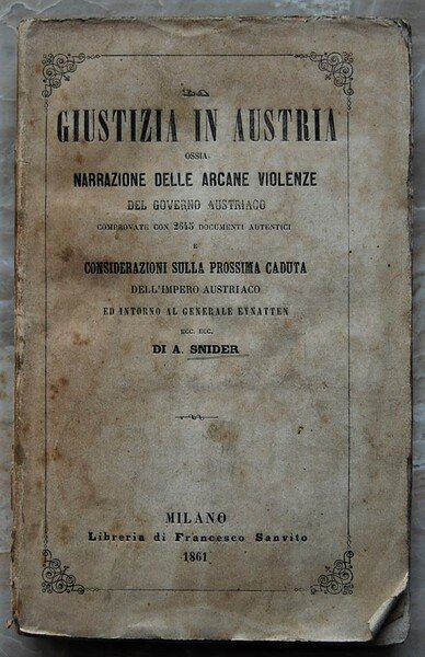 LA GIUSTIZIA IN AUSTRIA. OSSIA NARRAZIONE DELLE ARCANE VIOLENZE DEL GOVERNO AUSTRIACO.