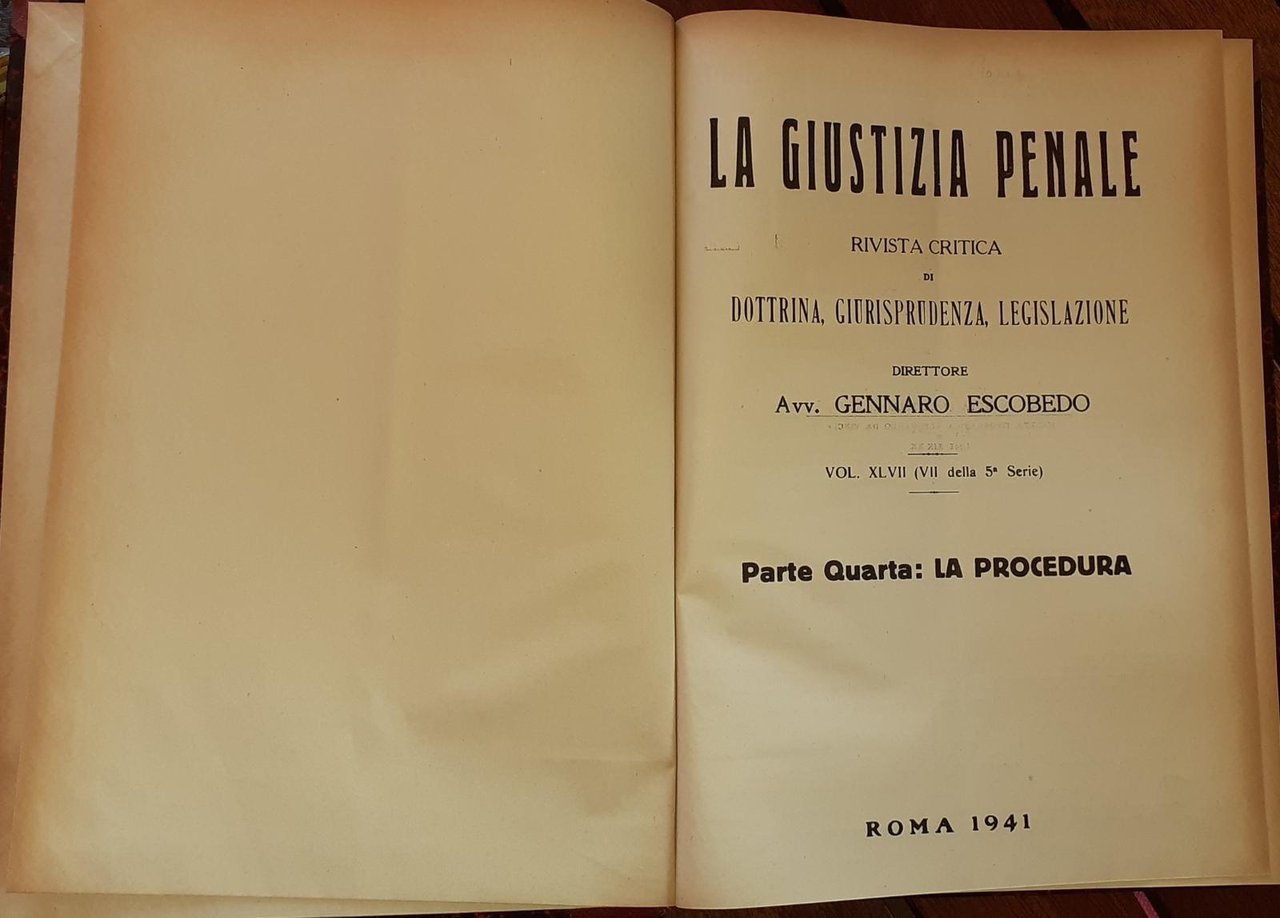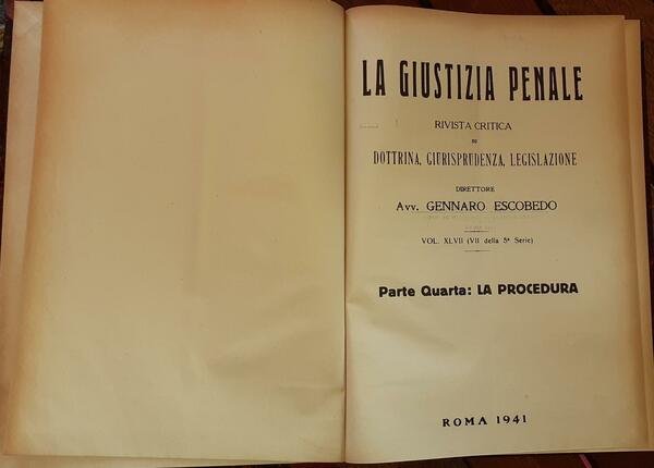 La Giustizia Penale . Rivista critica di dottrina, giurisprudenza, legislazione . Vol. XLVII (VII della 5 serie) Parte quarta :La procedura.