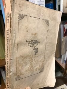 Dedica manoscritta dell'autore ad Antonia Parolini alla sguardia. Piccole mancanze al dorso, larga gora digradante dal frontespizio alle prime 25 pagine. Piatto ant. e prime 16 pag. staccate dal dorso nella parte sup. ma ben legate. Leggere fioriture, esemplare discreto. Pagg. 181, 2 nn. Brossura edit. Mis mm 185x110