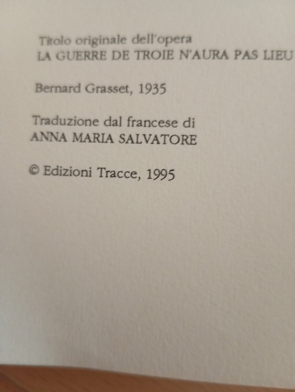 La guerra di Troia non si farà, Jean Giraudoux, 1995 | Rare and modern books |