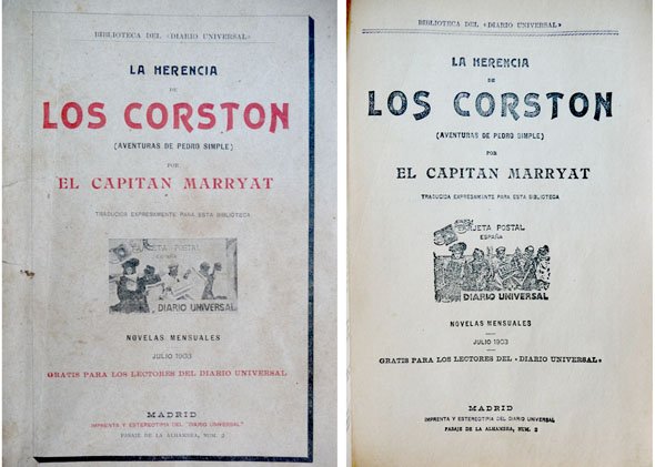 La herencia de los Corston. Aventuras de Pedro Simple. | Rare and modern books | Marryat, Frederik.