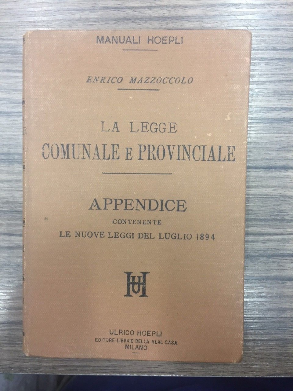 Appendice contenente le nuove leggi del luglio 1894. Milano. Hoepli 1895, 16°, pp. 256+32. Leg. Edit.