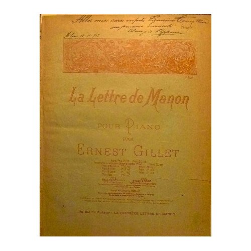 La lettre de Manon ( allegro quasi moderato ) | Rare and modern books | Gillet Ernest