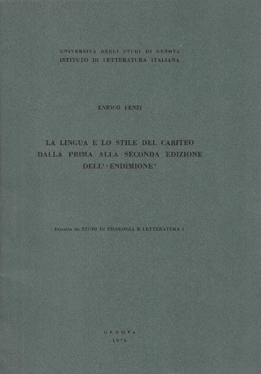 La lingua e lo stile del Cariteo dalla prima alla seconda edizione dell' "Endimone". Estratto da studi di filologia e letteratura 1