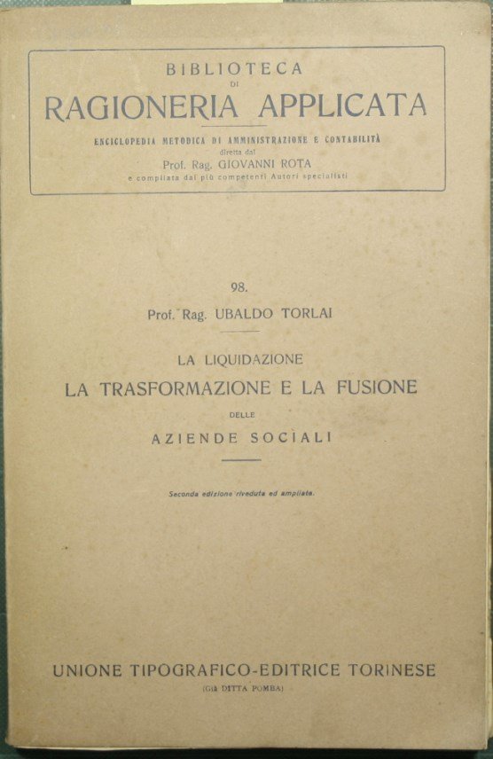 La liquidazione, la trasformazione e la fusione delle aziende sociali | Rare and modern books | Torlai Ubaldo