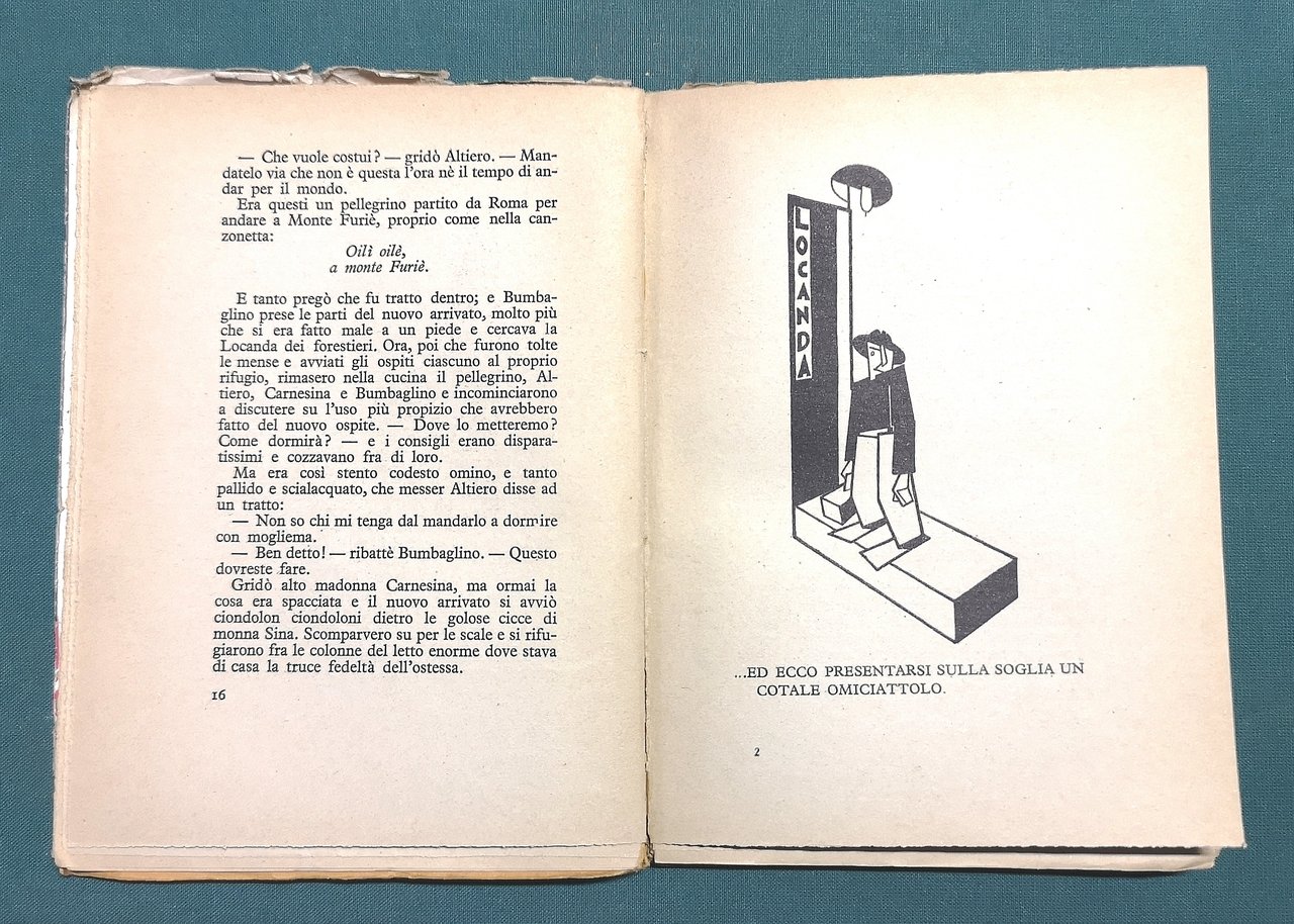 >in-16, pp. 89, (7) di indici e notizie editoriali, illustrazioni di Ivo Pannaggi; broch. edit. con sovracoperta figurata a colori, di Carlo A. Petrucci. Buon esemplare, ma sovracoperta con difetti.