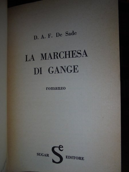 D.A.F. De Sade - Traduzione dal francese di Antonietta Cavalca. Collana Olimpo Nero 9. Milano, Sugar Editore, 1966. In-8°, tela. 263 pp. Non è presente la sovracopertina, lato pagina leggermente ingiallito per la scarsa qualità della carta, peraltro in ottimo stato di conservazione. Neg. mob. bianco piccolo.