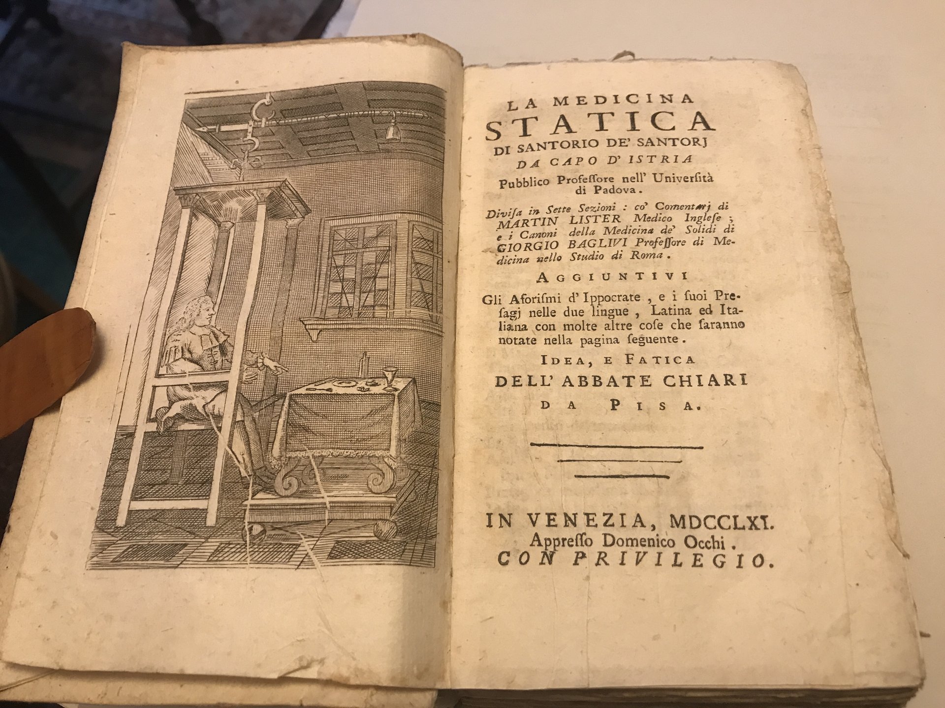 La Medicina Statica. Di S. de' S. da Capo d'Istria. Pubblico Professore nell'Università di Padova. Divisa in sette sezioni . Aggiuntivi gli Aforismi d'Ippocrate e i suoi Presagi nelle due lingue, Latina ed Italiana, con molte altre cose. Idea e Fatica dell'abbate Chiari da Pisa