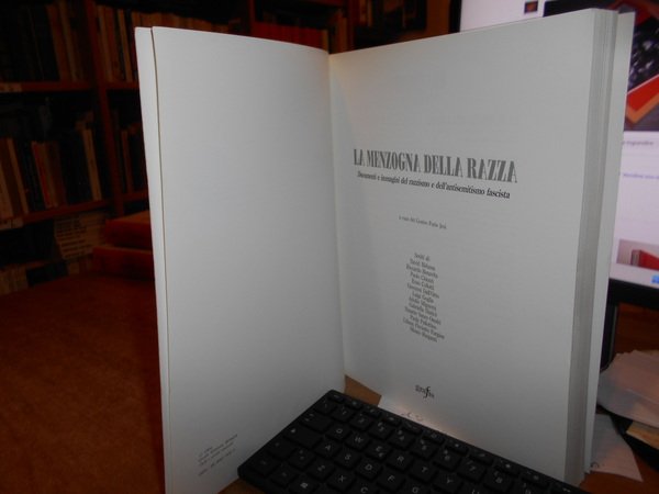 AA.VV. Bologna, Grafis Edizioni, 1994. La menzogna della razza. Documenti e immagini del razzismo e dell' antisemitismo fascista. In-4° cart. edit. ill. a col. 399 pp. con numerose illustrazioni anche a colori n.t. Dorso scolorito ma libro in ottimo stato di conservazione. Uff. stanzetta mob. a sinistra I - 2 - 2 carc.