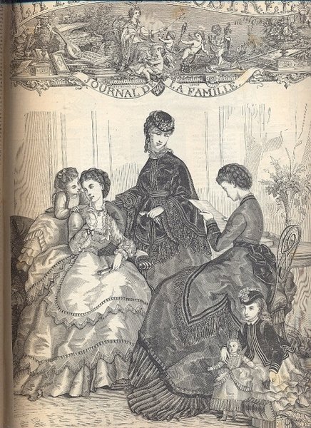 9 voll., in 4°, di cui 6 rilegati in m. perg. e 3 in m. pelle. La rivista è dotata di numerosissime inc., pregevoli e ricche nei particolari, di diverse grandezze , (di cui ben 32 a doppia p.) raffiguranti modelli di abiti, mantelli, cappelli, abiti per bambini, biancheria intima, dettagli di arredi, modelli per ricami, pizzi, arazzi, tappeti, svariati tipi di acconciature, pagine di musica notata, ecc. Lettere ai d. in o. Di seguito l'elenco delle annate con relative mende e/o mancanze: Anno 1862 - mancano i nn. 4 - 6 - 11 - 15 - 16 - 17 - 18 - 20 - 21 - 22 - 23 - 24 - 25 - 26 e poi dal 37 al 52 compresi. La p. 239/240 del n. 29 presenta la mancanza di una striscia al marg. sup. che impedisce la completa lettura delle prime 16 righe. Le pp. 277-278-279-280 del n. 34, evidenziano una mancanza dello spigolo inf. di ca. cm. 11 x 9 che lede il t. Anno 1863 - mancano i nn. da 1 a 10 compresi, poi 13 - 14 - 19 - 33 - 34 - 39 - 44. La p. 225/226 del n. 29 presenta una asportazione dello spig. inf. di ca. cm 19 x 9. Da notare che il n. 27 è stato rilegato dopo il n. 27 del 1862. Gli anni 1862 e 1863 sono rilegati insieme in m. perg. Anno 1864 - mancano i nn. 15 - 27 - 31 - 34 - 35 - 38 - 45 - 46 - 51. La p. 17/18 del n. 3 presenta l'asportazione di una parte dello spigolo inf. di ca. cm 19 x 12. La p. 125/126 del n. 16 è stata quasi totalmente asportata. Il n. 47 presenta delle pp. mal restaurate, comunque leggibili. La p. 393/394 del n. 50 evidenzia uno strappo. Anno 1865 - mancano i nn. 1 - 10 - 11 - 17 - 21 - 27 - 29 - 32 - 34 - 37 - 38 - 40. La p. 99/100 del n. 7 è mancante di una striscia al marg. inf. che lede l'ultimo rigo musicale. Gli anni 1864 e1865 sono rilegati insieme in m. perg. Anno 1866 - mancano i nn. 6 - 10 - 13 - 14 - 19 - 28 - 33 - 34 - 35 - 39 - 41 - 42 - 43 - 45 - 50 - 51. Anno 1867 - mancano i nn. 9 - 10 - 11 - 13 - 16 - 27 - 39. Gli anni 1866 e 1867 sono rilegati insieme in m. perg. Anno 1868 - mancano i nn. 8 - 11 - 12 - 13 - 15 - 40. La p. 263/264 del n. 33, Evidenzia uno strappo al centro, mentre la p. 305/306 presenta un foro di ca. cm 10 di diametro che lede il t. In questo medesimo volume è rilegato anche un'altro 1868 ma di altra testata: "L'illustrateur des dames. La mode de Paris et le journal des soirées de famille". Tale rivista presenta anche ben 18 inc., a tutta p., a colori. Sono presenti i nn. dall' 1 al 13 (escluso il 6 ed il 10) e dal 40 al 52. Sono stati rilegati prima i numeri dal 40 al 52 e dopo quelli dall' 1 al 13. Entrambi questi anni 1868 sono rilegati insieme in m. perg. Anno 1869 - rilegato singolo in m. perg., manca il n. 5. Il n. 6 è stato rilegato dopo il 7 ed il 23 dopo il 24. Anno 1870 - completo. La p. di indice è stata quasi totalmente asportata. Le pp. 99/100 e 361/362 evidenziano un ampio strappo che interessa ma non lede il t. Anno 1871 - manca il n. 9. I nn. 32 ,33, 46, 47 e 48 presentano gore che interessano ma non ledono il t.La p. 328/329 del n. 41 ha uno strappo. Gli anni 1870 e 1871 sono rilegati insieme in m. perg. Anno 1873 - completo. Anno 1874 - completo. Anno 1875 - completo. Gli anni 1873, 1874 e 1875 sono rilegati singolarmente in m. pelle. Mende ai piatti. Antichi forellini.