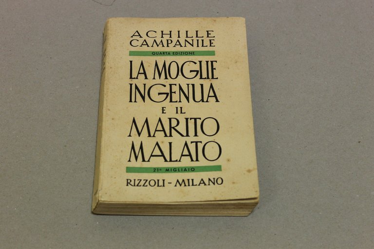 Achille Campanile La moglie ingenua e il marito malato. Milano, Rizzoli 1941 italiano, 18,5 13 pp.262 Quarta edizione. Copertina un po' sporaca e brunita, presenza di fioriture all'interno.