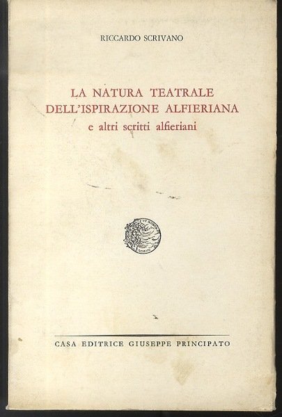 La natura teatrale dell'ispirazione alfieriana e altri scritti alfieriani. | Rare and modern books | Scrivano, Riccardo.