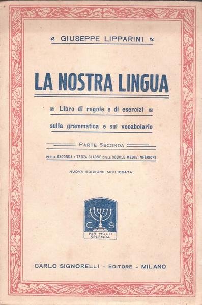 - Z1 CARLO SIGNORELLI - EDITORE GIUSEPPE LIPPARINI LA NOSTRA, LINGUA SIGNORELLI, 1935. NUOVA EDIZIONE MIGLIORATA. LIBRO DI REGOLE E ESERCIZI, SULLA GRAMMATICA SUL VOCABOLARIO. PARTE SECONDA. PER SECONDA, TERZA CLASSE DELLE SCUOLE MEDIE INFERIORI. ORDINARIE TRACCE, D'USO DEL TEMPO, VEDI FOTO Varie, Lingua Italiana