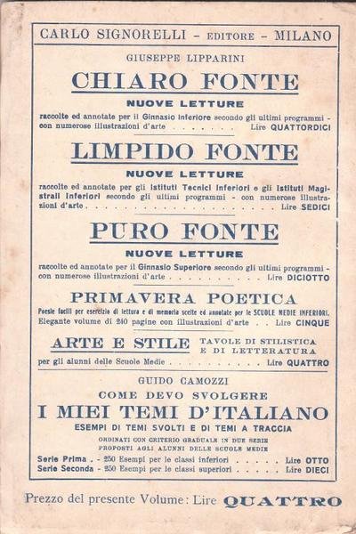 Signorelli, 1935. Nuova edizione migliorata. Libro di regole e di esercizi sulla grammatica e sul vocabolario. Parte Seconda. Per la seconda e terza classe delle scuole medie inferiori. 159 pagine. Ordinarie tracce d'uso e del tempo, vedi foto. Spedizioni tracciabili con raccomandata entro 24 ore dall'ordine. Soft cover in fine conditions, no inscriptions or markings inside. Worldwide delivery.