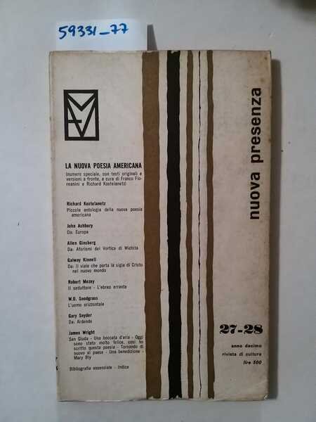(Collana : Nuova presenza - n. 27-28) Piccola antologia della nuova poesia americana - DETTAGLIO DELLE CONDIZIONI : Coperta e pagine ingiallite con lievi fioriture - (1.VIII.7).