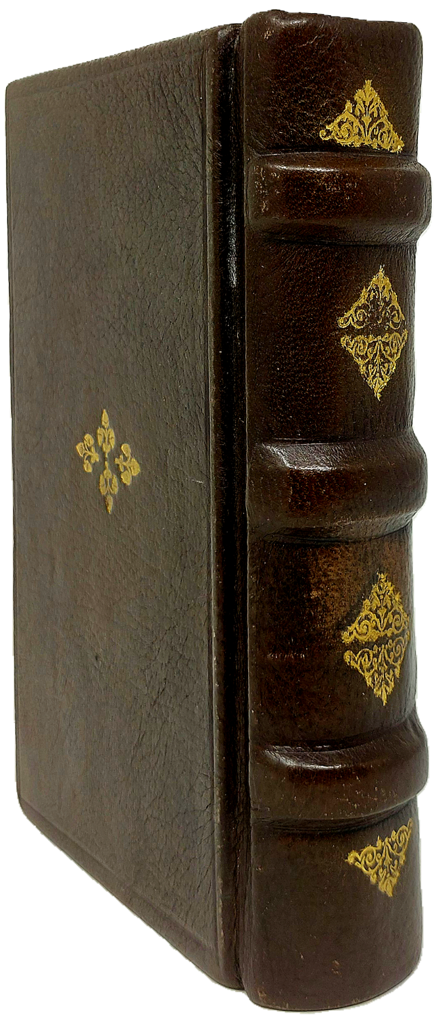 >2 opere in 1 volume in-16, 1) ff. 8 n.n., pp. 366; 2) ff. 23 n.n. Legatura moderna in piena pella con piccoli fregi in oro al centro dei piatti e sul dorso a tre vervi, in stile seicentesco. L'opera, che tratta anche di alimenti come riso, vino, fave, fichi, quaglie, etc. è legata con "Rimedii dove s'insegna molti e varji secreti per medicar bue, vacche, cani, cavalli & ogni altra sorte di animali" del medesimo Falcone, Venezia 1619. Opera non comune nonostante le numerose edizioni che ebbe all'epoca. Timbro illeggibile al frontespizio. Buon esemplare. B.I.N.G n° 804 (ediz. 1603)