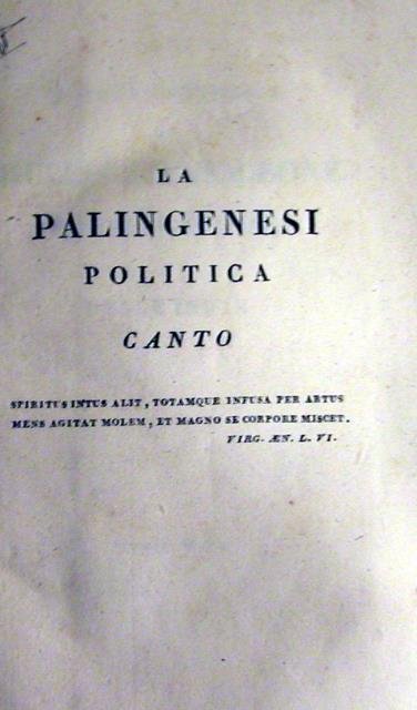 LA PALINGENESI POLITICA. Canto. 1809 circa.