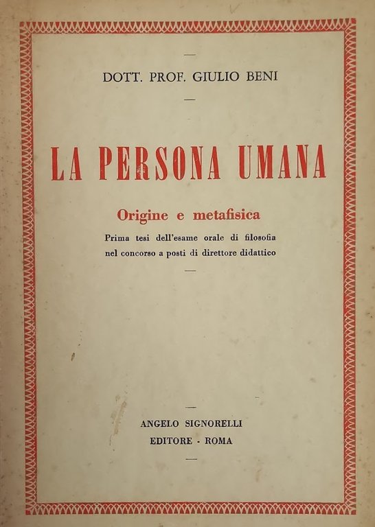 LA PERSONA UMANA. ORIGINE E METAFISICA