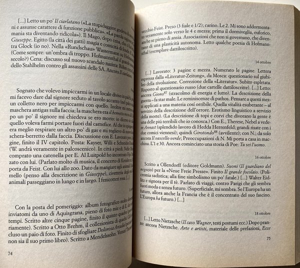 Soggetti: Autobiografie, Biografie letterarie, Diari, Lettere, Memorie, Storia, Scrittori, Letterati, Antifascismo, Omosessuali, Germania nazista, Olocausto, Nazismo, Novecento, Ebrei, Ebraismo, Shoah, Romanzi biografici, Letteratura tedesca, Libri Vintage Fuori catalogo, Saggi, Famiglia Mann-Dohm, Erika Mann, Esuli, Esilio, Leben und literarisches Werk im Exil, Flucht ins Leben, Der fromme Tanz, Berlino, Intelletuali, Anni Trenta, La pia danza, Dopoguerra, Escape to Life, André Gide, Tagebücher, Joachim Heimannsberg, Berliner Tageblatt, München, Monaco, Annemarie Schwarzenbach, Schriftsteller Schweizer, Stunde, Süskind, Tagebuch, Politik, Wien, Vienna, Zeitschrift, Zeitungen, Gespräch, Weiter, Welt, Parigi, Francia, Antisemitismo, Persecuzioni razziali, New York, Deutschen, Deutschland, Politische, Geschichte, Frankfurt, Aufsatz, Freund, Anna Magnani, Reich, Rapporto con il padre, Emigrazione, Il Mago, Premio Nobel, Droga, Giraudoux, Julien Green, Maestri, Stefan George, Gotfried Benn, Stefan Zweig, Hitler, Dandy, La svolta, Lettere, Journaux intimes, Schoeller, Straniero, Conversazioni, Grand Hotel, Roma, Amsterdam, Viaggio, Hans Aminoff, Ernst Bloch, Breitbach, René Crevel, Jean Cocteau, Max Brod, Brentano, Feist, Therese Giehse, Grundgens, Hellmert, Henning, Kesten, Landshoff, Thomas, Golo Mann, Katia, Dorothea Sternheim, Letture, Passioni, Diario intimo, Vita quotidiana, Autobiographies, Literary biographies, Diaries, Letters, Memories, History, Writers, Writers, Antifascism, Homosexuals, Nazi Germany, Holocaust, Nazism, Twentieth century, Jews, Judaism, Biographical novels, German literature, Out of print books, Essays, Family, Exiles, Berlin, Intellectuals, Thirties, The pious dance, Post-war, Monaco, Paris, France, Anti-Semitism, Racial persecution, Relationship with the father, Emigration, The Magician, Nobel Prize, Drugs, Masters, The turning point, Letters, Foreigner, Conversations, Readings, Passions, Intimate Diary, Daily Life
