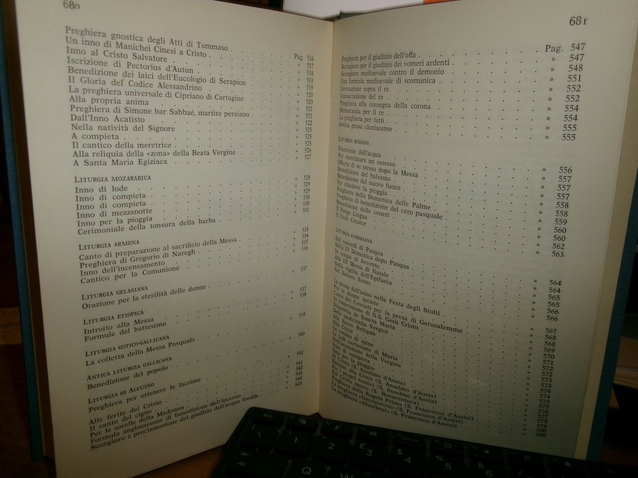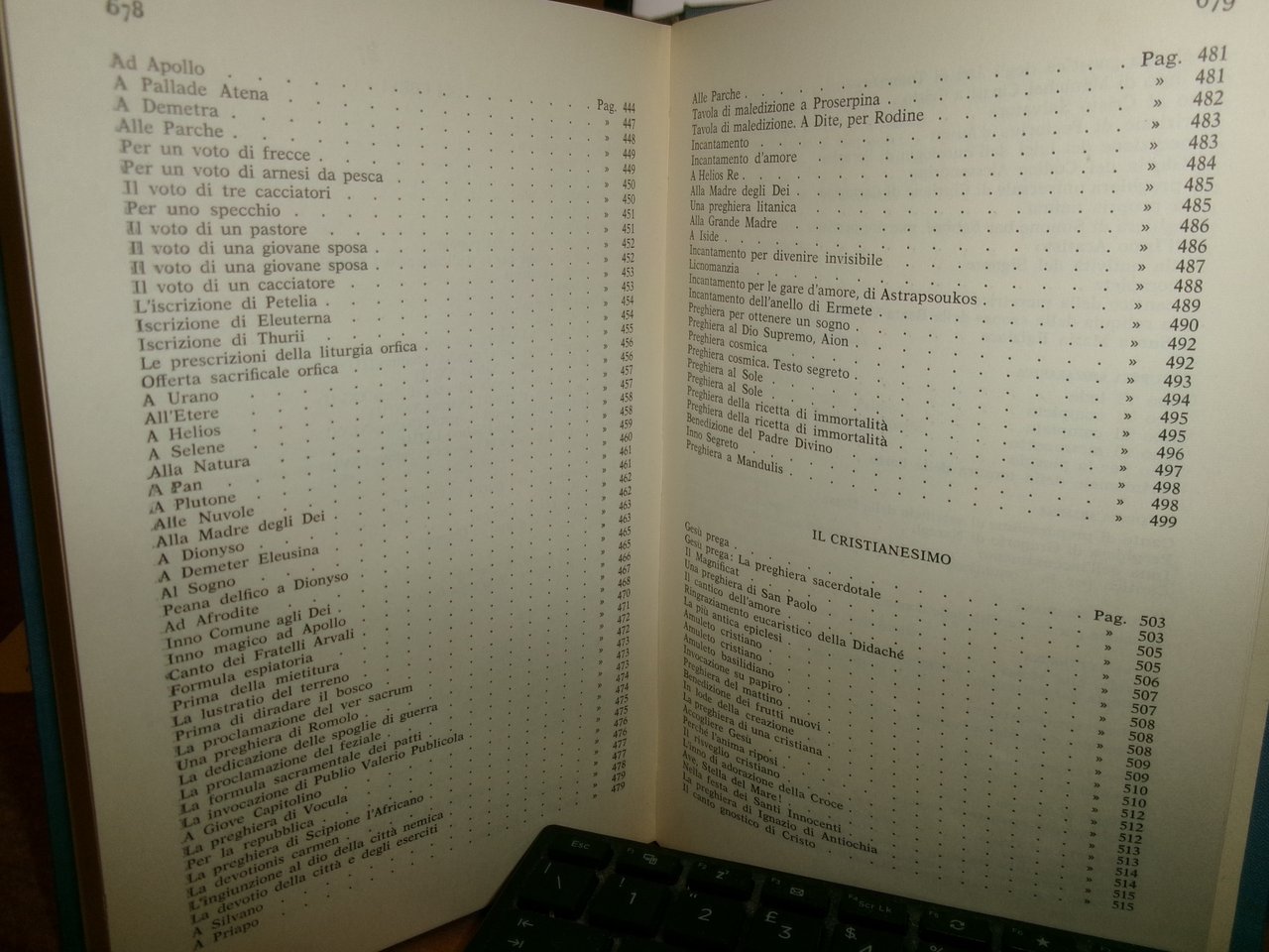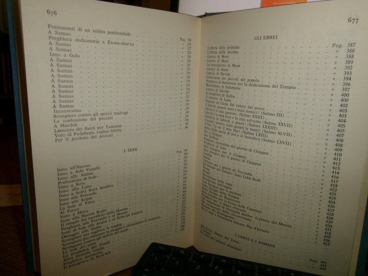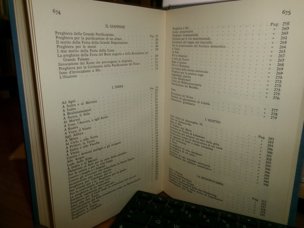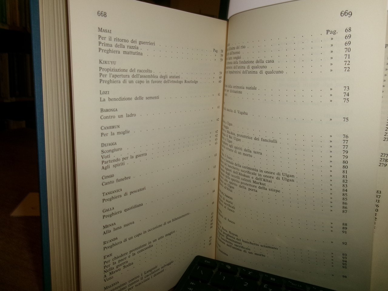 LA PREGHIERA DELL' UOMO antologia delle preghiere di tutti i tempi e di tutti i popoli. Premessa, traduzione e commento di ALFONSO M. DI NOLA. Parma, Ugo Guanda Editore, 1957. In-8°, tela edit. con fugura in oro e rosso sul piano anteriore, titolo in oro sul dorso. 685 pp. con numerose tavole in bianco e nero f.t. In ottimo stato con astuccio in cartonato illustrato. Neg. esot. mob. 13