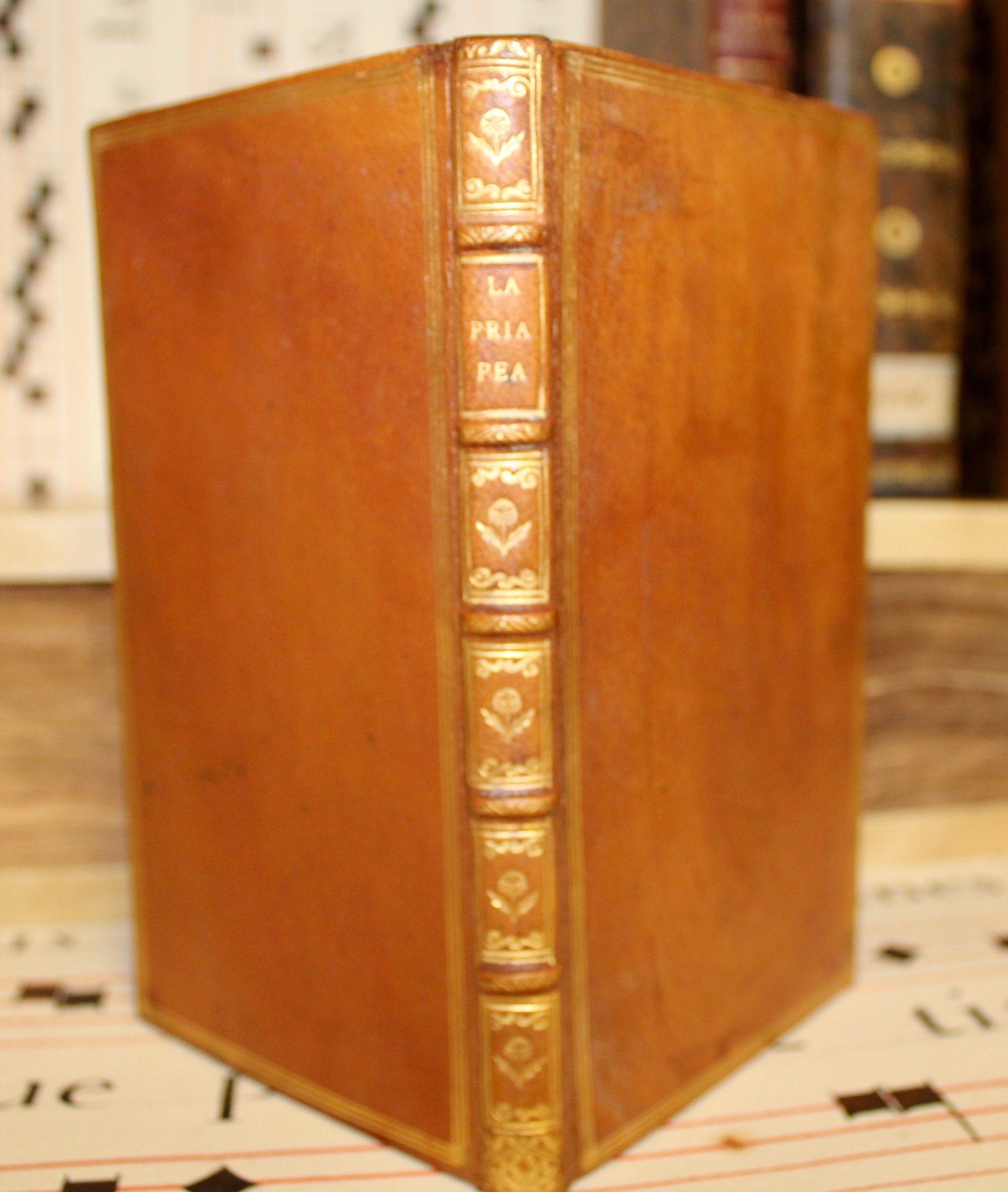 In 8° (mm 165x95), pagg. (4), 127 con alcune lettere del Franco alla fine, datate 1541, fra cui una molto tagliente ai principi in cui si scaglia contro all'Aretino. Tutta l'opera è una satira oscena contro al celebre letterato toscano. Bellissimo esemplare in tutta pelle nocciola con triplo filetto in oro ai piatti, dorso a cinque nervi con fregi e titolo in oro, tagli marmorizzati. <BR>Nicolò Franco (Benevento, 1515 - Roma, 1570) di umili origini, si stabilì a Venezia nel 1536, dove l'anno successivo entrò alle dipendenze dell'Aretino. Ben presto, le sue grandi ambizioni letterarie lo posero però in concorrenza e in netto contrasto col suo protettore, costringendolo a lasciare precipitosamente la città lagunare. Ci si fa un'idea dell'astio intercorrente tra i due scorrendo le molte decine di sonetti ingiuriosi che il Franco inserì a bella posta nella raccolta intitolata La Priapea (1541), opera smaccatamente anticlericale e licenziosa, che costruì la fama maudit dello scrittore beneventano. Nel 1558, approdò a Roma in cerca di fortuna, dopo aver soggiornato in varie città italiane (Casale Monferrato, Mantova, Napoli). Privo però di solidi appoggi curiali, il Franco scrisse un violento libello contro papa Paolo IV e la potente famiglia Carafa, cosa che lo portò ad essere processato e condannato a morte dall'Inquisizione. Venne impiccato sul ponte di Castel S. Angelo l'11 marzo 1570. Il rapporto prima amichevole poi antagonistico con Pietro Aretino segnò ossessivamente gran parte della produzione letteraria di questo "irregolare" della letteratura. Nella Priapea, pubblicata nel 1541, che ebbe immediatamente grande fortuna in Italia e in Europa, l'autore scarica umori biliosi non solo contro i suoi nemici ma contro ogni forma di convenzione. Naturalmente sarà da tener conto che il Franco in questo ubbidisce anch'egli alle convenzioni di un genere letterario, che avea proprio in Pietro Aretino il suo maggior autore. <BR>