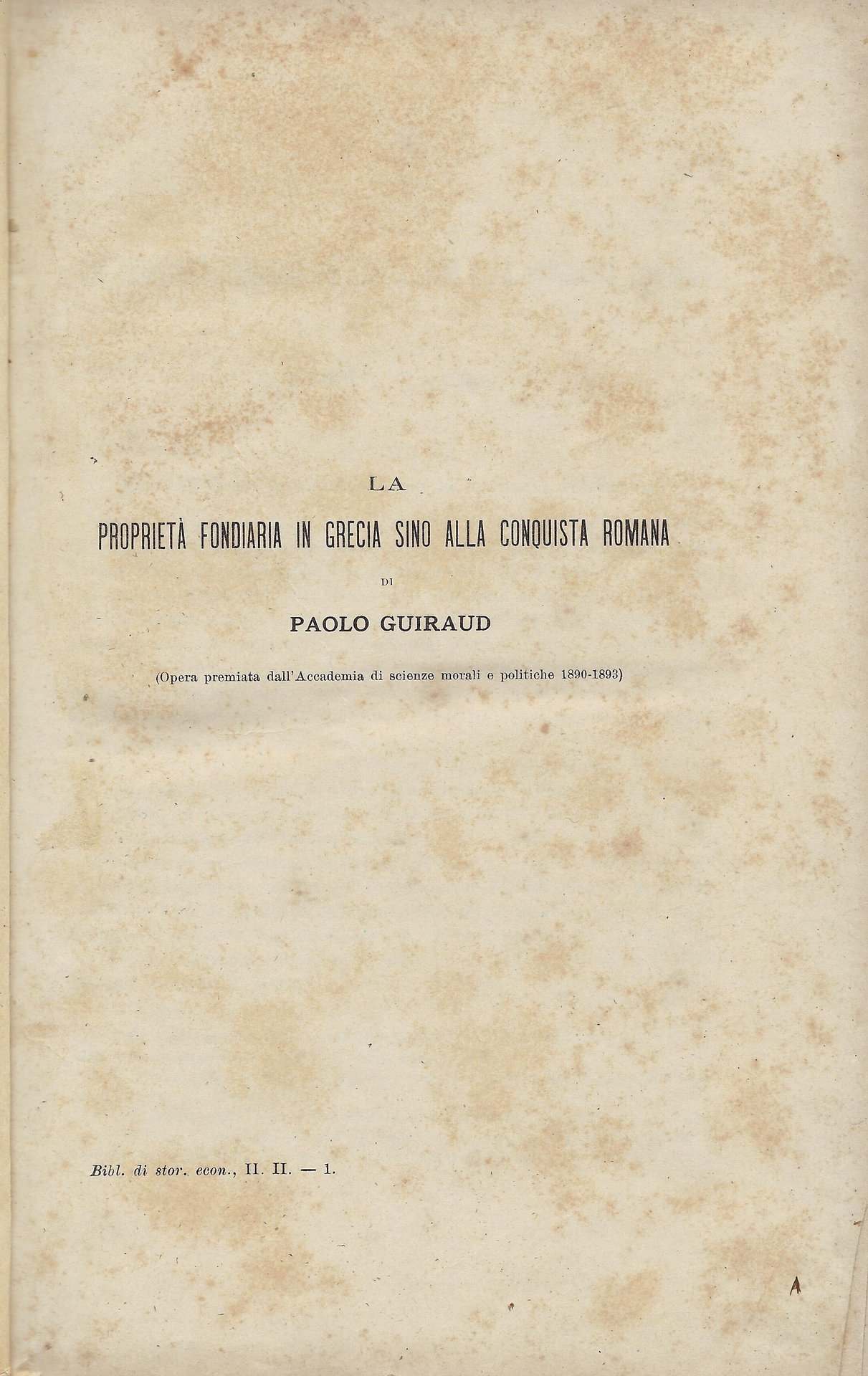 La proprietà fondiaria in Grecia sino alla conquista romana