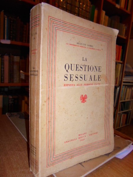 La questione sessuale esposta alle persone colte. Augusto Forel. Milano, Fratelli Bocca, 1949. In-8°, br., 471 pp. con 2 tavole a colori. Libro in buono stato di conservazione. Neg. mob. 6