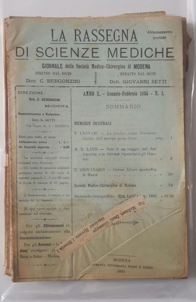 LA RASSEGNA DI SCIENZE MEDICHE SOCIETA' MEDICO CHIRURGICA DI MODENA 1895 ANNATA