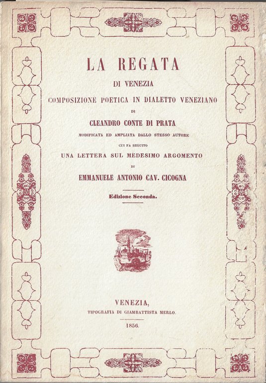 La regata di Venezia : composizione poetica in dialetto veneziano, cui fa seguito una lettera sul medesimo argomento di Emanuele Antonio Cav. Cicogna