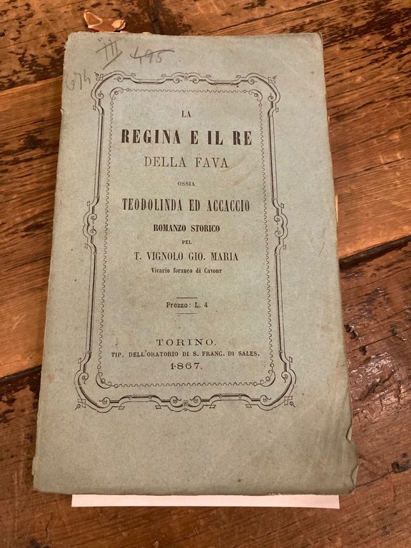 La Regina e il Re della Fava ossia Teodolinda ed Accaccio. Romanzo storico pel T. Vignolo Gio. Maria Vicario foraneo di Cavour