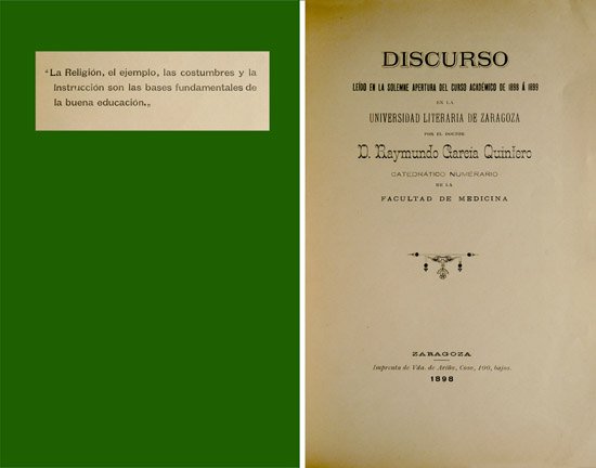 La religión, el ejemplo, las costumbres y la instrucción son las bases fundamentales de la buena educación. Discurso leído en la Apertura del Curso Académico 1898-1899 en la Universidad Literaria de Zaragoza.