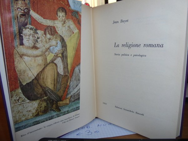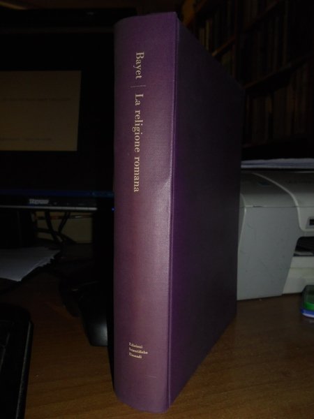 Jean, Bayet. Torino, Einaudi, 1959. La Religione Romana. Storia politica e psicologica. In-8°, tela edit. 368, (2) pp. con 20 tavole in bianco e nero fuori testo. Normali segni del tempo probabilmente mancante della sovracopertina. Neg. mob. nuovo.