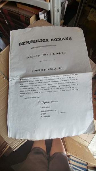 La repubblica municipale della Comune di Serravalle, prov. di Camerino gelosa custode del mandato ricevuto protesta contro la straniera invasione, e rinnova la più ferma energica adesione al Governo della Repubblica Romana…