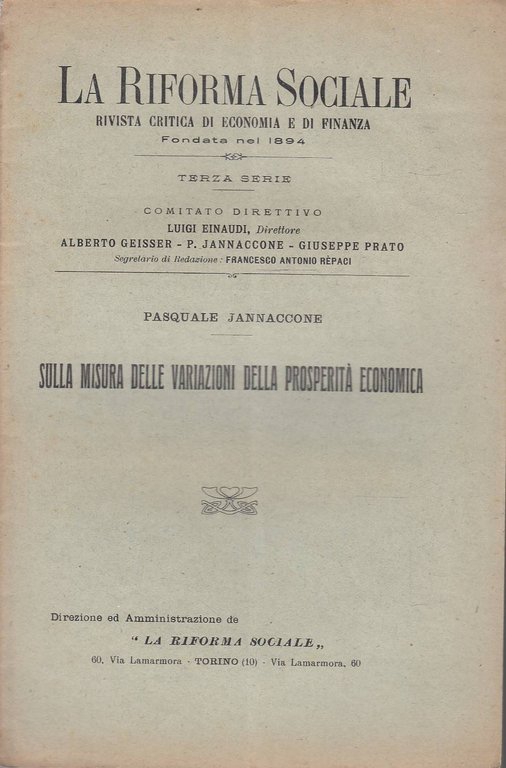 La riforma sociale: rivista critica di economia e di finanza. Sulla misura delle variazioni della prosperità economica