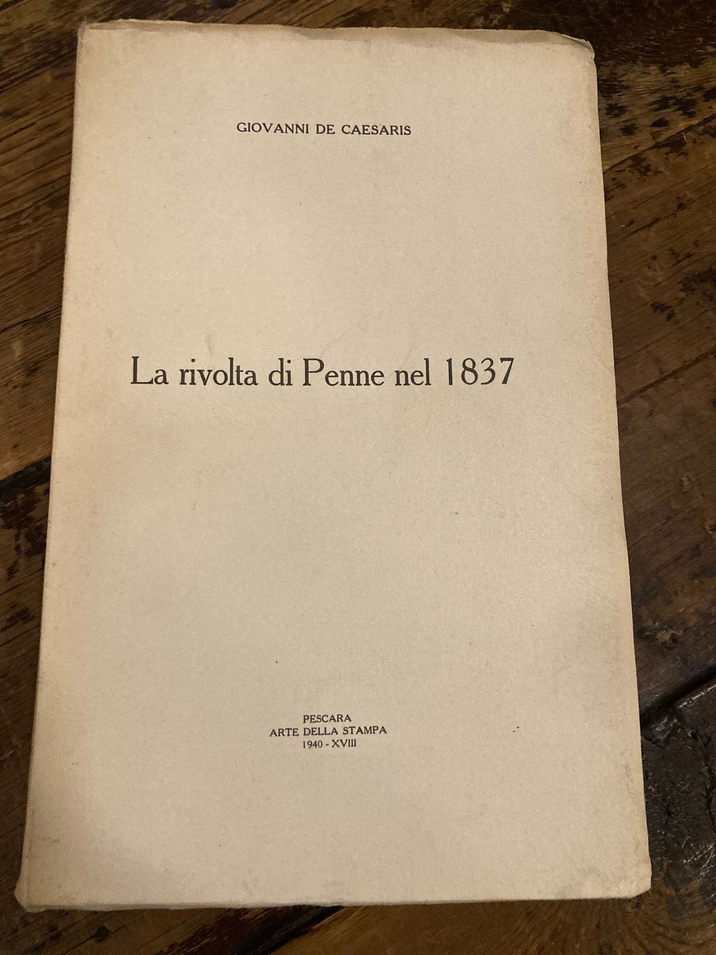 In-8° (24x 15 cm), pp. VII (1), 257 (1), 57 (1), brossura editoriale bianca con titoli in nero al dorso e al piatto anteriore. Tavole b/n fuori testo. Ottimo esemplare a fogli chiusi. Edizione originale di questa importante memoria circa i fatti di Penne ovvero la rivolta dei Pennesi capeggiati da Clemente de Caesaris del luglio 1837. Bibliografia. In appendice: Documenti, Sentenze dei rivoltosi in parte fucilati a Teramo a settembre.