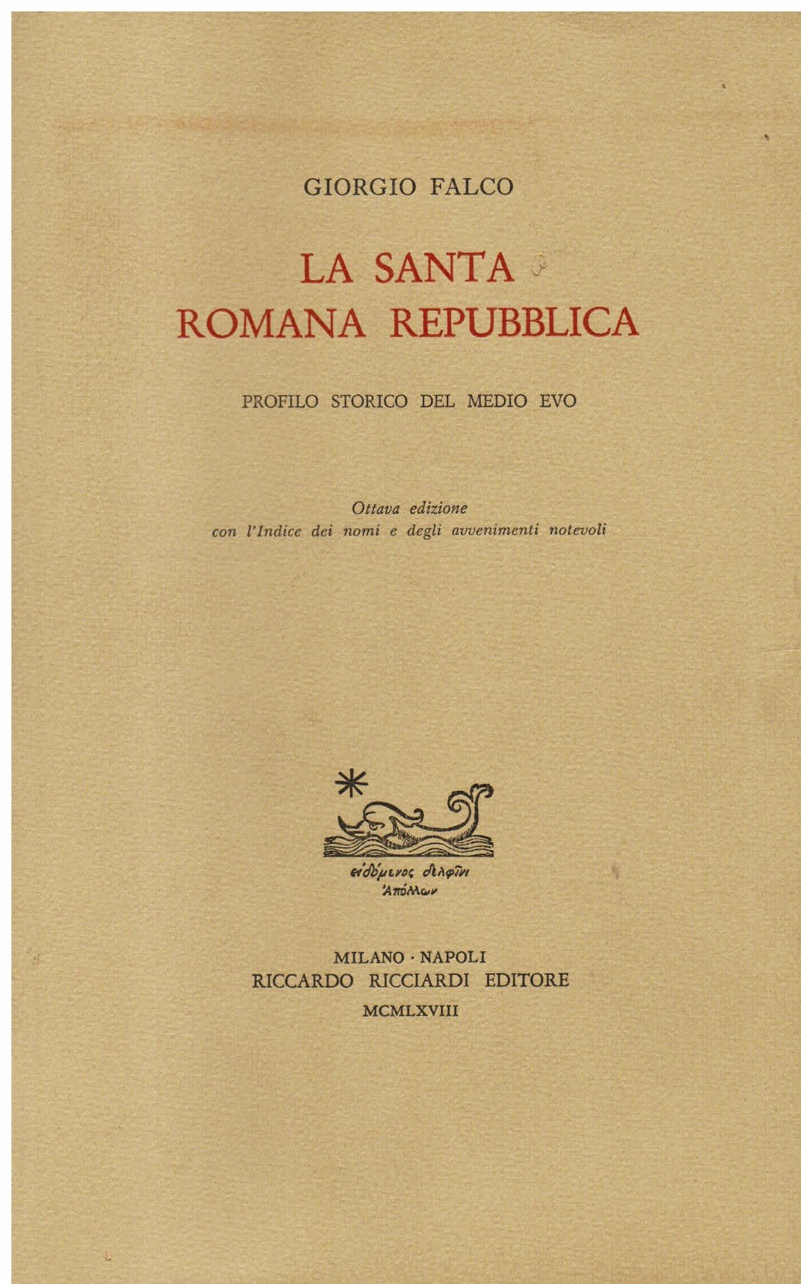 La Santa Romana Repubblica. Profilo storico del Medio Evo. Ottava edizione con l' Indice dei nomi e degli avvenimenti notevoli