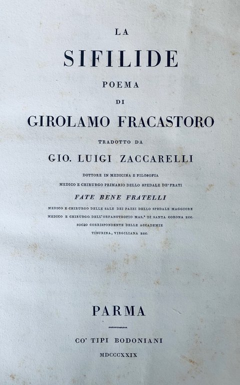 La Sifilide, poema. Tradotto da Gio. Luigi Zaccarelli